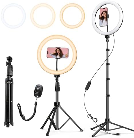 Professional studio-quality illumination in a compact form. This 12-inch LED ring light delivers consistent, flicker-free brightness ideal for content creation, photography, and video work. The adjustable color temperature ranges from warm to cool tones, allowing precise control over your lighting environment. Dimmable settings accommodate various shooting conditions and preferences. The circular design provides even, shadow-free lighting that flatters subjects and minimizes harsh contrasts. Perfect for streamers, photographers, makeup artists, and anyone requiring reliable, adjustable light sources for professional results.